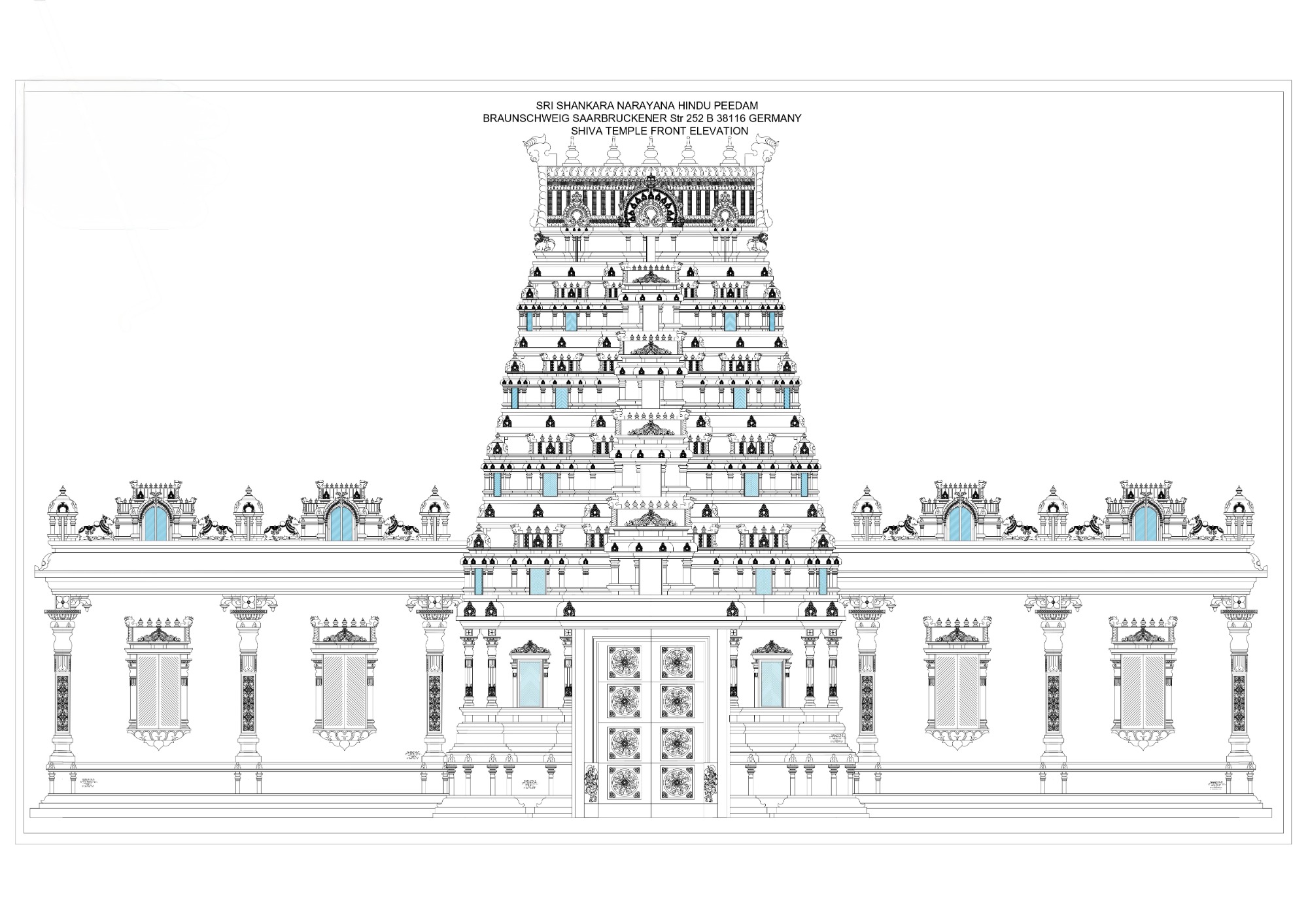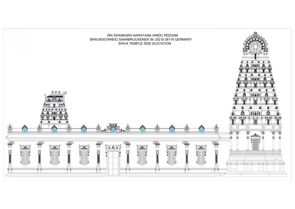 gebaut werden, mit einem Raja Gopuram und weiteren traditionellen Elementen, wie sie in vielen Tempeln in Indien zu finden sind.